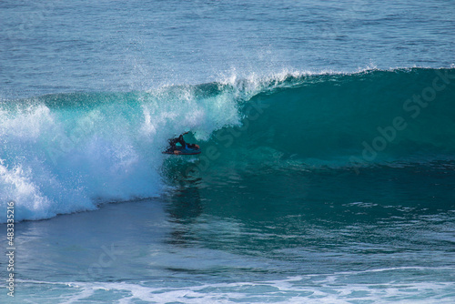 © nvphoto, Fototapeta premium Surfer in a perfect barrel wave