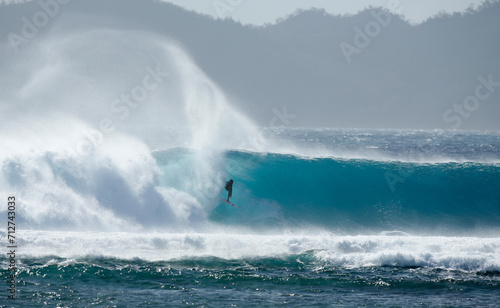 © scott, Fototapeta premium Surfer on a wave in Fiji