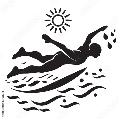 Obraz premium Surfer silhouette surfing ocean wave sun
