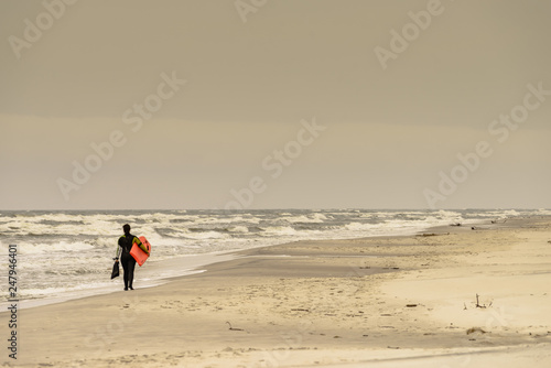 Naklejka premium Surfer walking on beach