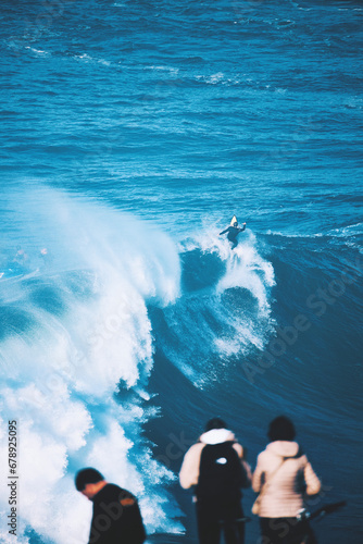 © Jakub, Naklejka premium Surfers Conquer Massive Waves in Nazaré