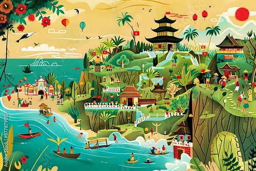© Maquette Pro, Fototapeta premium Surfers Ride Waves at Kuta Beach Bali