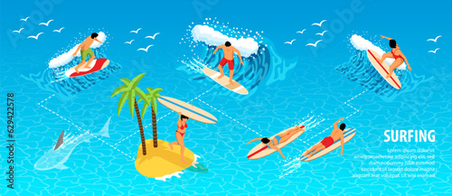 Obraz premium Surfing Isometric Infographics