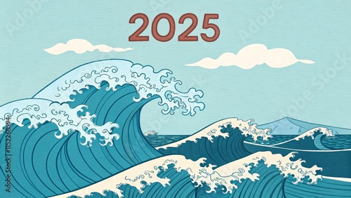 Naklejka premium Surfing Waves of 2025 - Ocean waves crashing, symbolizing change, power,...