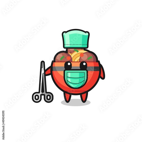 © heriyusuf, Fototapeta premium surgeon meatball bowl mascot character
