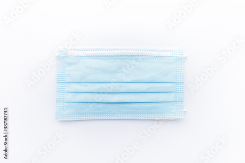 Fototapeta premium Surgical mask isolated on white background. Concept : Medical waste disposal during the novel COVID-19 pandemic.