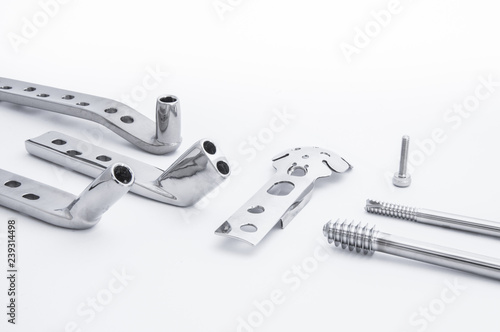 Fototapeta premium Surgical system of dynamic fixation for hip bone on white background