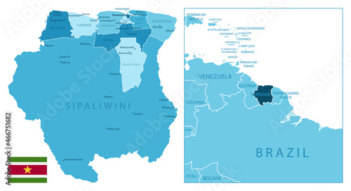 Obraz premium Suriname - highly detailed blue map.