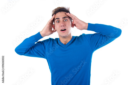 © Denis, Naklejka premium surprised and funny person. Expression of emotions.
