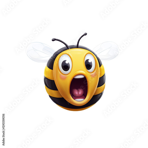 Obraz premium Surprised Cartoon Bee Emoji, Shocked Insect Character, Amazed Bumblebee...