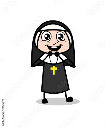 Fototapeta premium Surprised Cartoon Nun Laughing Expression Vector