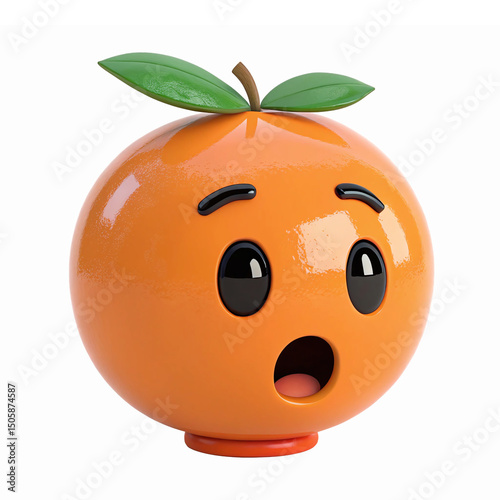 © Kiss, Obraz premium Surprised Cartoon Orange Character with Leaf and Big Eyes on Transparent Background