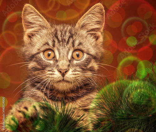© Sergey Khamidulin, Obraz premium Surprised cat on the Christmas tree.