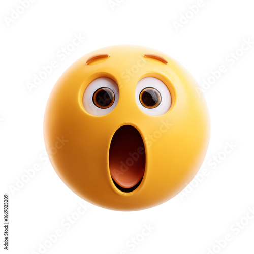 © MdMajnur, Fototapeta premium Surprised 3D emoji sticker with wide open mouth isolated on white background