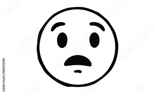 Fototapeta premium Surprised emoji with wide eyes and raised eyebrows. Vector retro hand drawn...