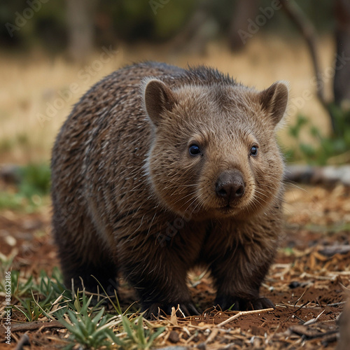 Naklejka premium Surprised raccoon marveling at the camera in wildlife habitat curious and...
