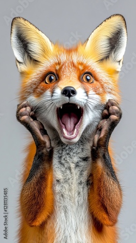 Fototapeta premium Surprised Shocked Fox with Mouth Open and Paws on Head, Humorous Animal...