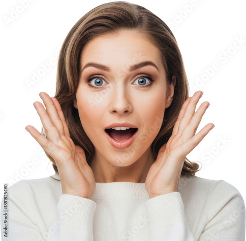 © Bambang, Fototapeta premium Surprised Woman with Hands on Face.