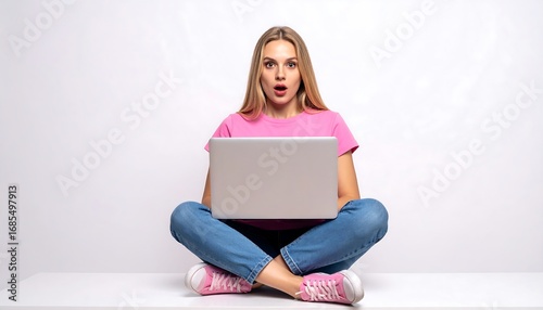 © IKetut, Fototapeta premium Surprised Woman with Laptop