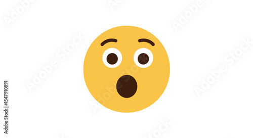 Fototapeta premium Surprised yellow emoji with wide eyes and open mouth on white background...