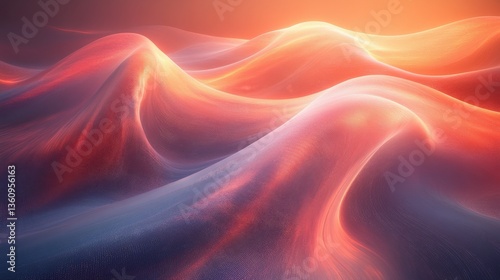 © Prime Stox, Obraz premium Surreal Abstract Landscape with Waves in Warm Lighting and Colors