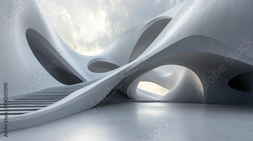 Fototapeta premium surreal architectural landscape featuring smooth, wave-like structures under...