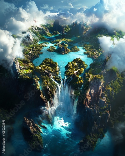 Obraz premium Surreal birds-eye perspective of a magical realm