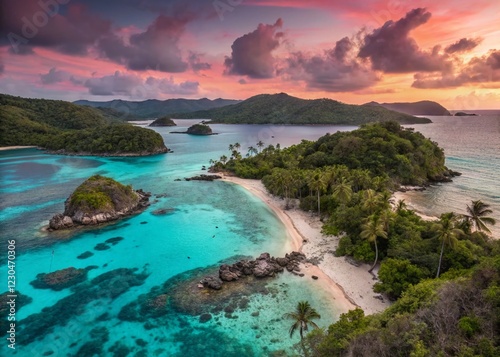 © Danicha, Obraz premium Surreal Caribbean Vacation: Dreamlike Beach Scene with Floating Islands