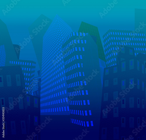 Obraz premium Surreal city. Tilted houses in cartoon style