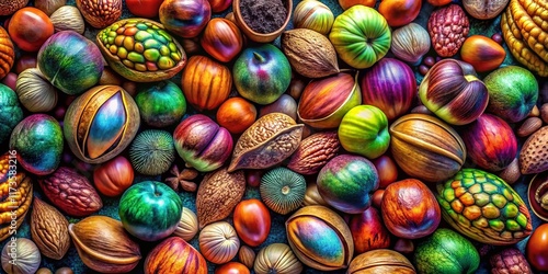 © Adisorn, Obraz premium Surreal Close-Up: Diverse Tree Nuts in Shells, Dreamlike Texture