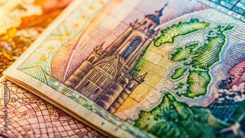 Fototapeta premium Surreal Closeup of European Visa Stamp in Passport for Travel Enthusiasts