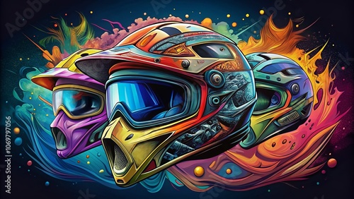 Naklejka premium Surreal Collection of Hand-Drawn Scribbles Featuring Motocross Helmets: Open...