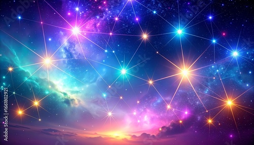 Fototapeta premium Surreal cosmic design featuring glowing constellations and luminous neon energy