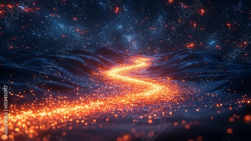 © Bussakon, Obraz premium Surreal Digital Landscape of Flowing Quantum Particles Unleashing Endless Possibilities