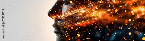 © Chano_1_na, Fototapeta premium Surreal double exposure of human and cosmic elements