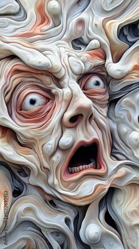 © starush, Naklejka premium Surreal face emerging from swirling, organic forms in a dreamlike scene, AI