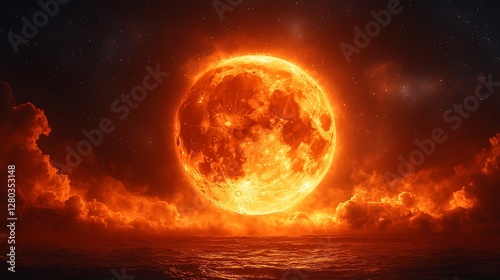 © Porosh, Fototapeta premium Surreal giant blood moon rising high resolution picture