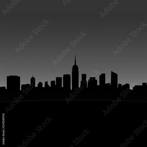 Fototapeta premium Surreal giant bull emerging from misty city skyline at dawn blending urban architecture with mythical imagination silhouetted skyline cityscape architecture illustration building city vector