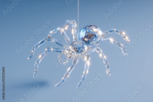 © ant, Fototapeta premium surreal glowing spider made of crystal, suspended in clean minimal background