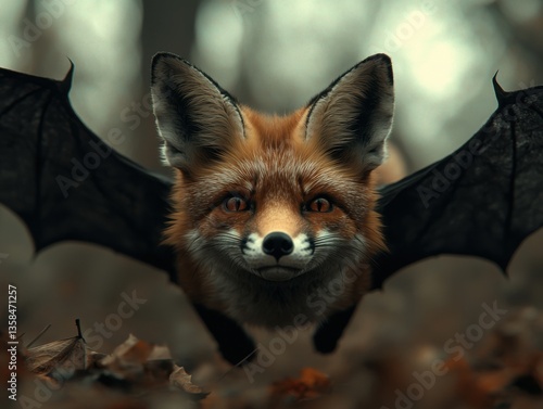 Obraz premium Surreal Image of a Fox with Bat Wings: Fantasy Halloween Concept, Forest Setting