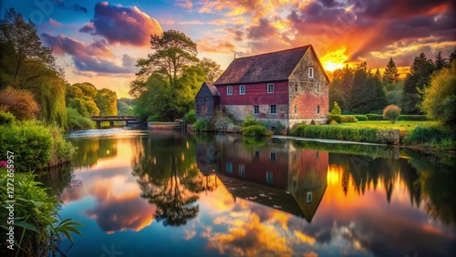 © Four888, Fototapeta premium Surreal Landscape: Jordans Mill & Mill Pond, Bedfordshire, England