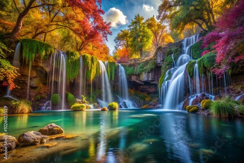 Obraz premium Surreal Natural Falls in Oklahoma: Enchanting Waterfalls and Lush Landscapes