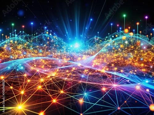 © Supittra, Naklejka premium Surreal Network Data Streams: Abstract Technology Communication