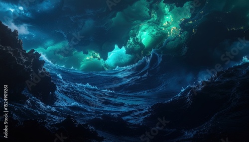 © Best Stocker, Obraz premium Surreal Ocean Wave Crashing into Celestial Sky