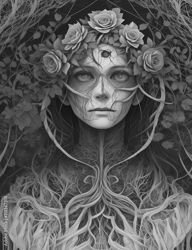 © Oliver, Fototapeta premium Surreal portraits,flower style, monochrome,lith printing