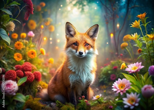 © prapatsorn, Fototapeta premium Surreal Red Fox in Garden: Magical Wildlife Encounter