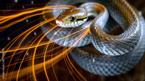 © Oksana Smyshliaeva, Obraz premium Surreal Serpent Surrounded by Dynamic Light Trails