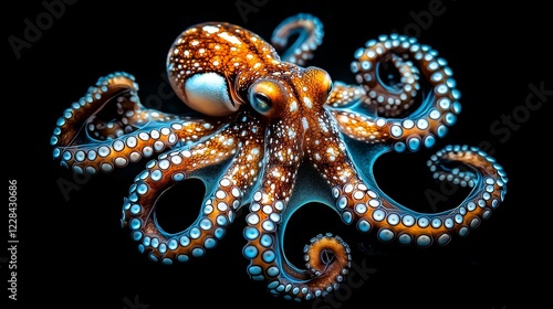 © Ekkarat_Studio, Fototapeta premium Surreal Underwater Alien Octopus with Bioluminescent Features in Darkness