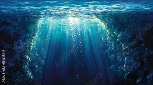Obraz premium surreal underwater scene as if gazing down into an endless abyss from above.