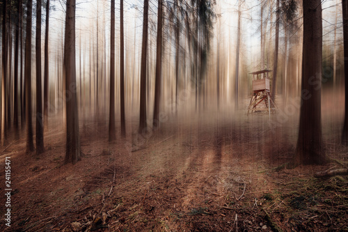 Obraz premium Surreale Wald Landschaft mit Unschärfe und Jäger Ansitz